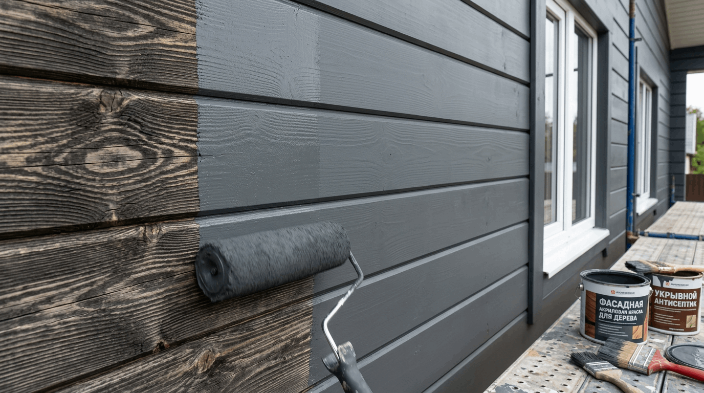 Также многое зависит от расположения дома. Если фасад стоит на открытом солнце, под ветром и дождем, покрытие будет испытывать более сильную нагрузку. В таких условиях особенно важны качественная защита от УФ и соблюдение технологии нанесения. Именно поэтому вопрос, какой краской покрасить деревянный дом снаружи, нельзя решать только по банке или цветовой палитре – нужно смотреть, предназначен ли состав именно для фасадных деревянных поверхностей.
