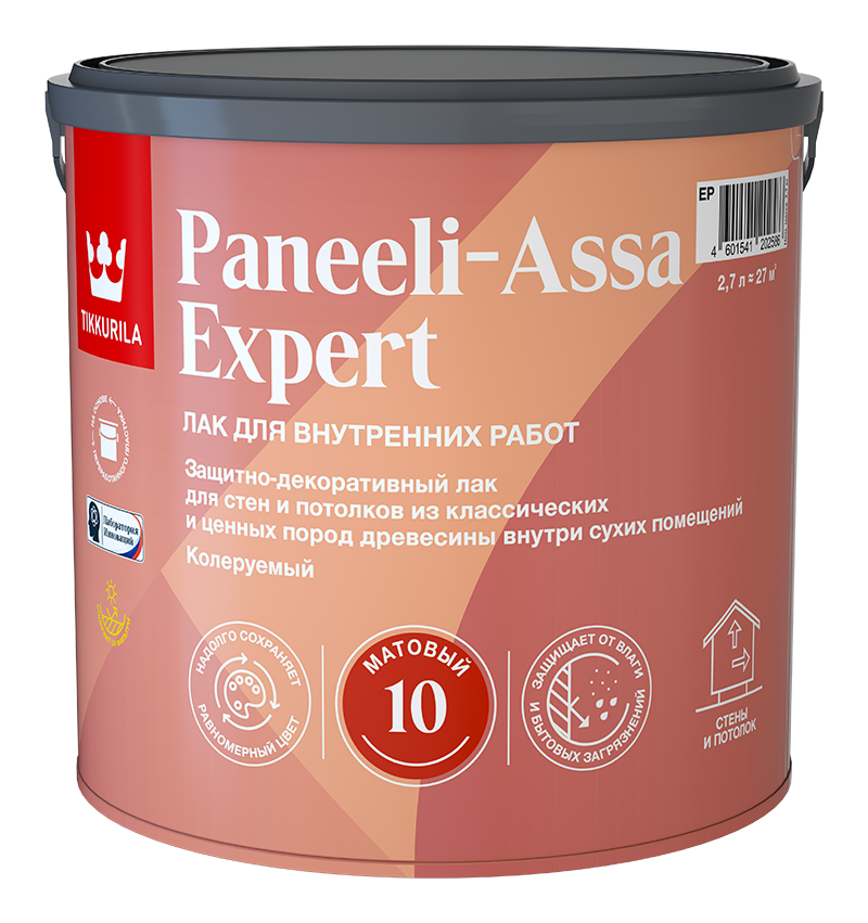 Довольно прочный лак, который можно уверенно протереть, это особенно актуально в местах часто тактильных — прихожие, коридоры, кухни и стены вдоль лестниц. Подходит и для ванных комнат, если речь про душевые кабины и отсутствие прямого попадания воды. Хвойные породы предварительно обработать грунтовочным антисептиком.