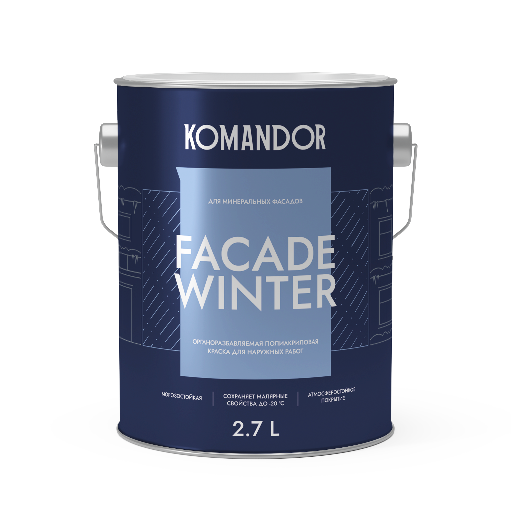 Акриловая, паропроницаемая, грязеотталкивающая, краска на растворителе для нанесения в отрицательную температуру.