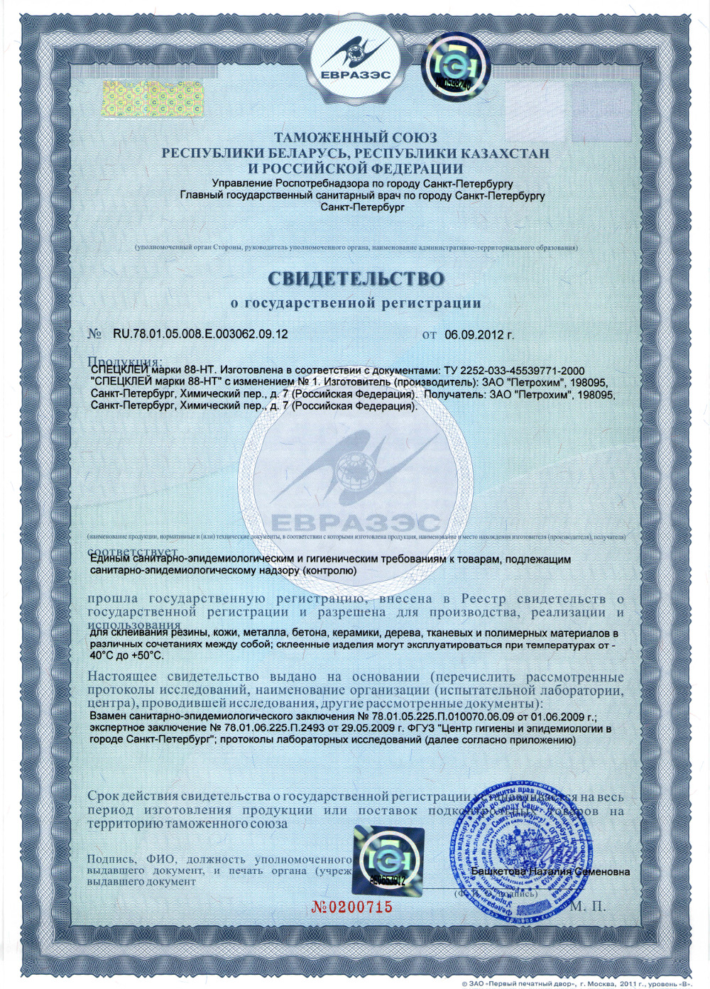 Предназначен для склеивания резины, кожи, металла, бетона, керамики, дерева, тканевых и полимерных материалов в различных сочетаниях между собой. Склеенные изделия могут эксплуатироваться при температурах от -40 °С до +50 °С. Спецклей марки 88-НТ — это контактный клей, который после нанесения на склеиваемые поверхности и выдержки в течение нескольких минут сохраняет липкость, а после прижатия склеиваемых поверхностей уже имеет начальную прочность склейки. Благодаря этому свойству со спецклеем марки 88-НТ быстро и удобно работать.