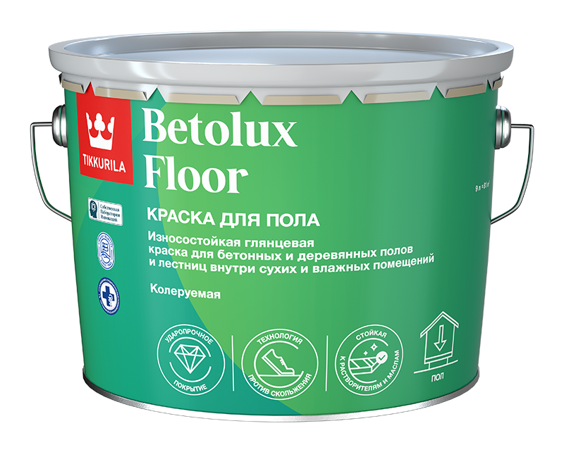 Износостойкая, моющаяся, нескользящая, влагостойкая алкидно-уретановая глянцевая краска для пола.