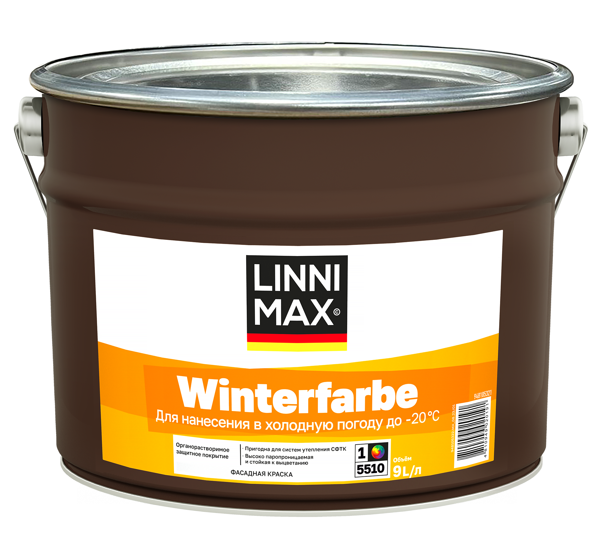 Акриловая, паропроницаемая, грязеотталкивающая, краска на растворителе для нанесения в отрицательную температуру.