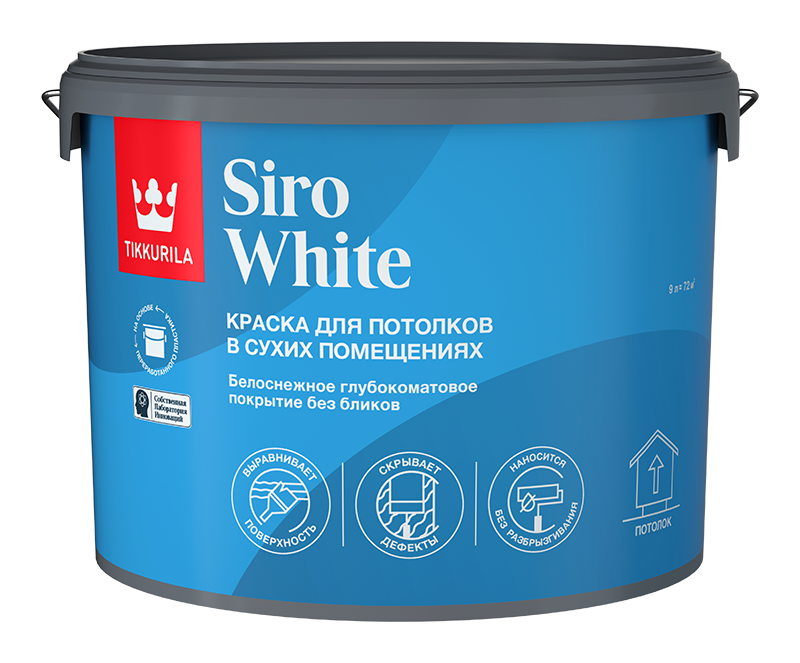 Совершенно матовая, легконаносимая, плотная, укрывистая, водоразбавимая, абсолютно белая акрилатная краска.