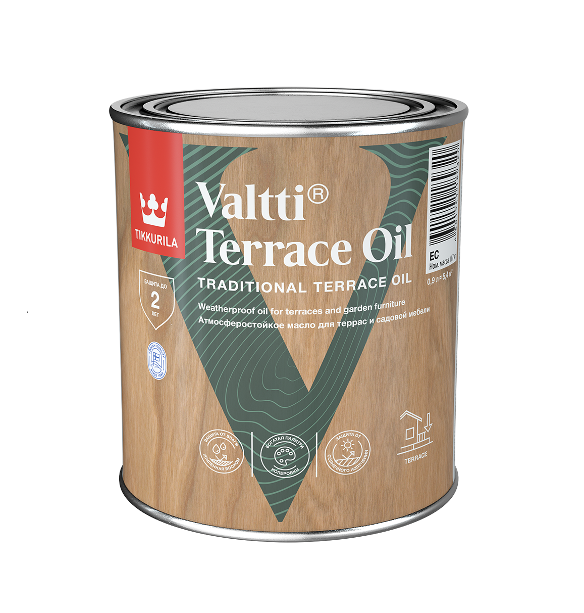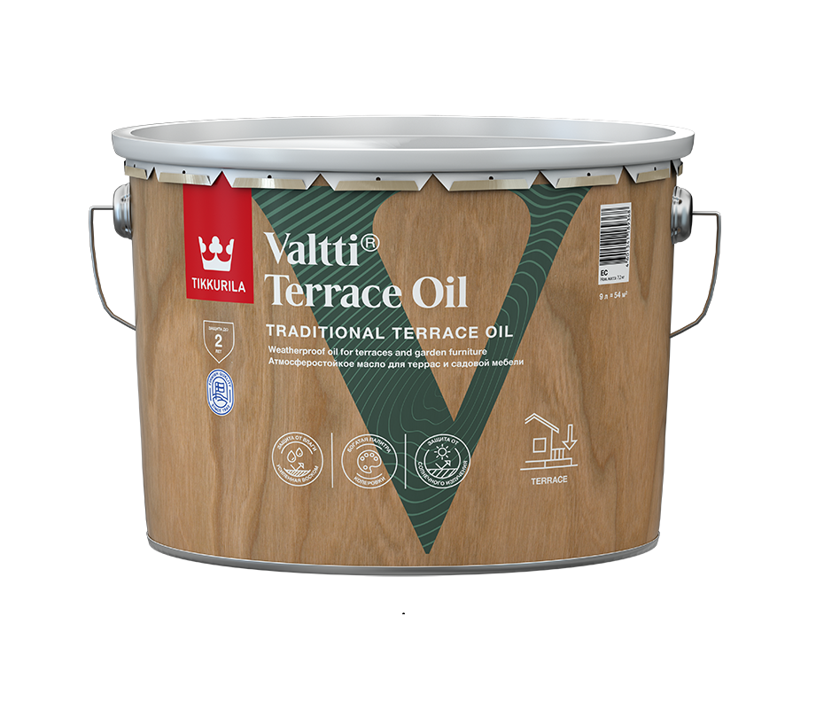 Масло для террас, крылец и прочих дощатых настилов. Впитывается в древесину, не образуя плёнки. Подходит для термообработанной древесины и специальных террасных пород дерева. Предназначено для всех открытых деревянных горизонтальных конструкций, вплоть до речных причалов.